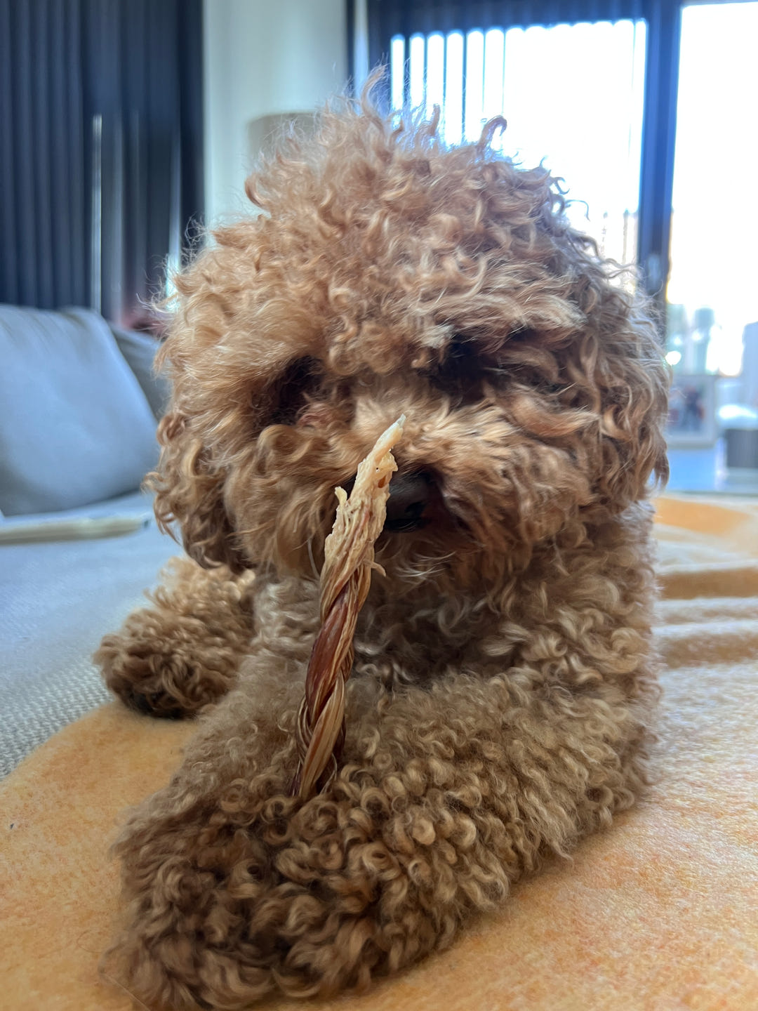 The beef knees that we have got from you are a great hit with our staffy and he has nearly devoured them and he brings them to bed with him he loves them
