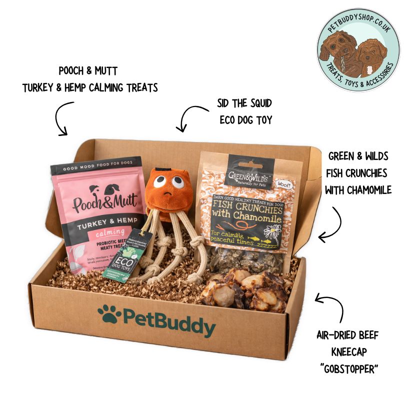 If your dog struggles with anxiety, restlessness, or boredom, the Calm & Relax Dog Box is designed to naturally support calmer behaviour through chewing, comfort, and high-quality calming treats.